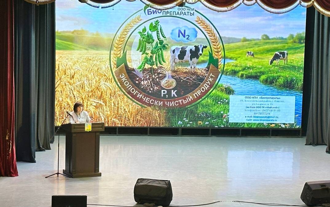 Вторая часть семинара продолжилась в Доме культуры Балтасинского района. Директор НПИ «Биопрепараты», к.б.н. — Ибатуллина Р.П., выступила в качестве спикера и представила доклад на тему: «Микробиологизация сельского хозяйства, контроль качества и использование биопрепаратов в интегрированном земледелии». Римма Петровна осветила ключевые аспекты внедрения биопрепаратов в аграрное производство и рассказала о ключевой роли микроорганизмов в повышении плодородия почвы и урожайности культур, подчеркнула важность строгого контроля качества биопрепаратов и объяснила, как их грамотное применение вписывается в концепцию интегрированного земледелия – сочетание биологических и традиционных методов для достижения максимальной эффективности и экологичности.